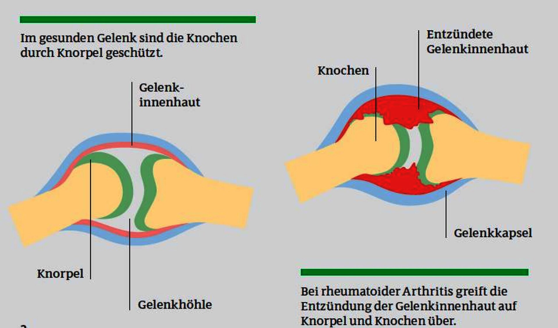 Mehr bekannt ist über den Entzündungsprozess im Gelenk. Dabei spielt das Immunsystem die wesentliche Rolle. Dieses System hat eigentlich die Aufgabe, den Körper vor Krankheiten zu schützen. Bei einer rheumatoiden Arthritis greifen Zellen des Immunsystems das eigene Körpergewebe an. Dadurch entzünden sich die Gelenke. Mediziner nennen einen solchen Angriff auf den eigenen Körper eine Autoimmunreaktion. Obwohl Ärzte die genaue Ursache der Erkrankung weiter nicht kennen, hat sich der Verlauf für viele Patienten heute deutlich verbessert.